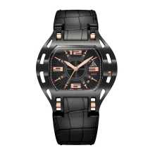 Luxury Wryst Skeleton 2824 Automatic Watch Swiss Made with high-quality genuine alligator leather strap. Produced in Limited Edition of 50 pieces, the black / Rose Gold dial and see-through skeleton case back make this luxury watch exclusive and perfect for collectors. The timepiece has an elegant sculpted 'K1' crystal on the case back, revealing the ETA 2824 mechanical self-winding movement.